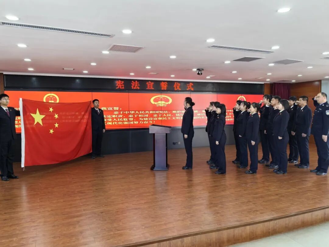 信仰赋予力量,誓言凝聚共识。盖检干警们汇聚一堂,在奏唱中华人民共和国国歌后,面向国旗整装肃立,高举右拳,庄严宣誓:“我宣誓,忠于中华人民共和国宪法,维护宪法权威,履行法定职责,忠于祖国、忠于人民,恪尽职守、廉洁奉公,接受人民监督,为建设富强民主文明和谐美丽的社会主义现代化强国努力奋斗!”声音铿锵回响、字句重如千钧。
