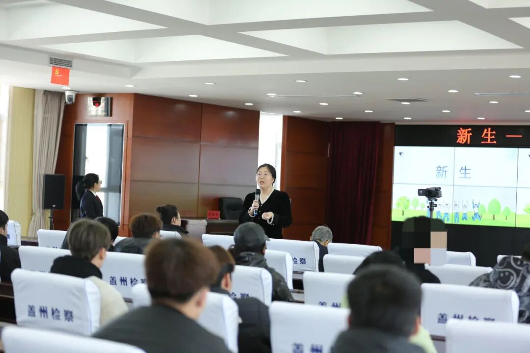 欢快热闹的游戏结束后,盖州市关工委宣讲团团长张桂芬老师以《十八岁新起点努力做自己》为题,向未成年人们讲述了对青春的理解,建议同学们以自爱、自尊、自信、自新、自律、自强的方式掌握好自己的青春,创造属于自己的美好未来,以十八岁为起点,开启自己的人生新篇章。部分未成年人和家长上台发言,表达了重新开始的强烈意愿。