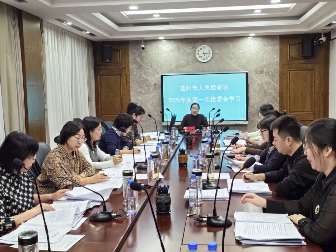 为进一步提高检委会议事议案能力,切实加强“三个管理”,更好发挥检委会宏观管理作用,盖州市人民检察院以实行检委会学习例会制度为抓手,着力提升检委会委员素质能力,建设学习型检委会。日前,盖州市人民检察院检察委员会召开2025年度第一次集体学习会,专题学习最高人民法院、最高人民检察院联合印发的《关于规范办理民事再审检察建议案件若干问题的意见》及《关于规范办理行政再审检察建议案件若干问题的意见》(以下简称两个意见)。会议由院党组书记、检察长杨晓云主持。